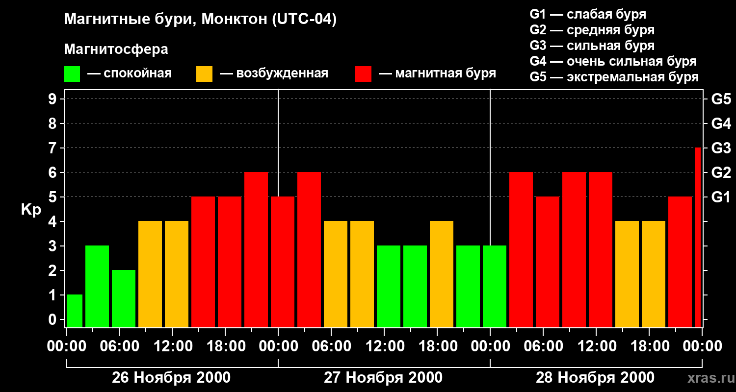Магнитные бури в Монктоне — 28 ноября 2000 года