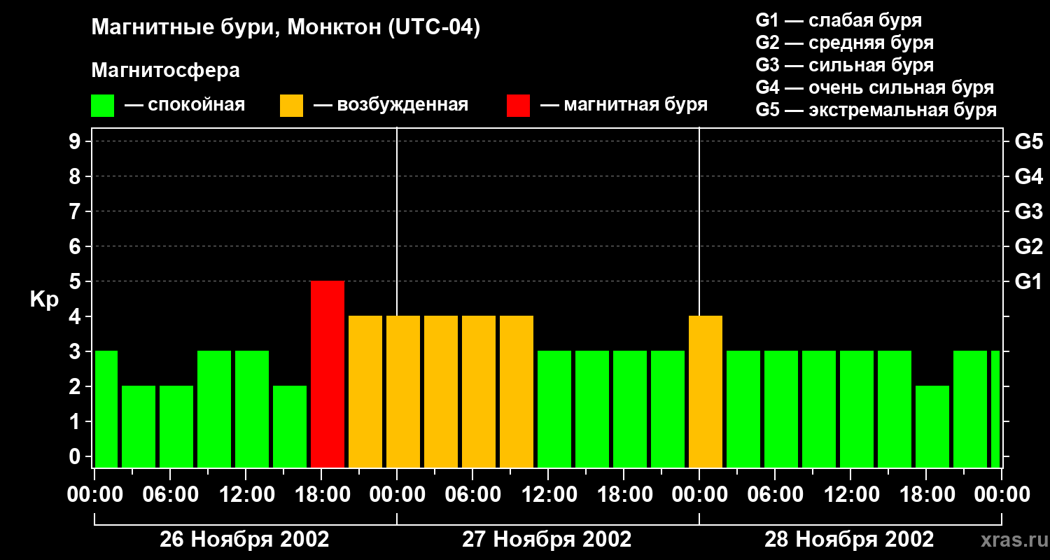 Магнитные бури в Монктоне — 28 ноября 2002 года