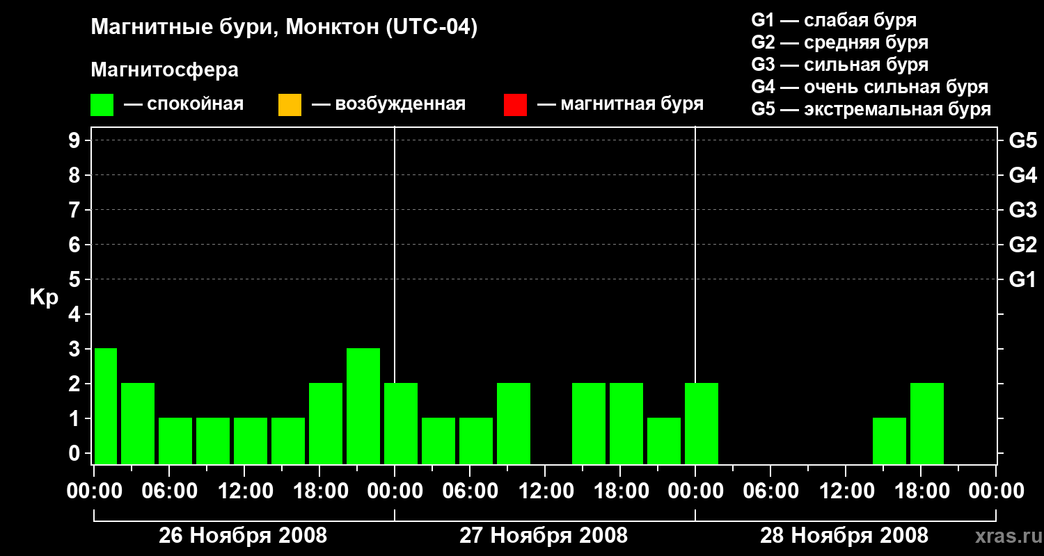 Магнитные бури в Монктоне — 28 ноября 2008 года