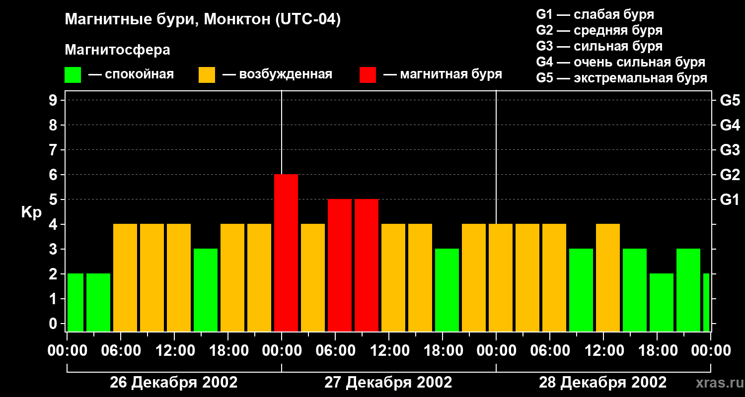 Магнитные бури в Монктоне — 28 декабря 2002 года