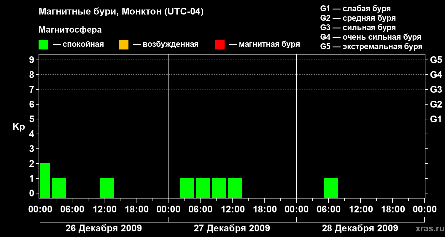Магнитные бури в Монктоне — 28 декабря 2009 года