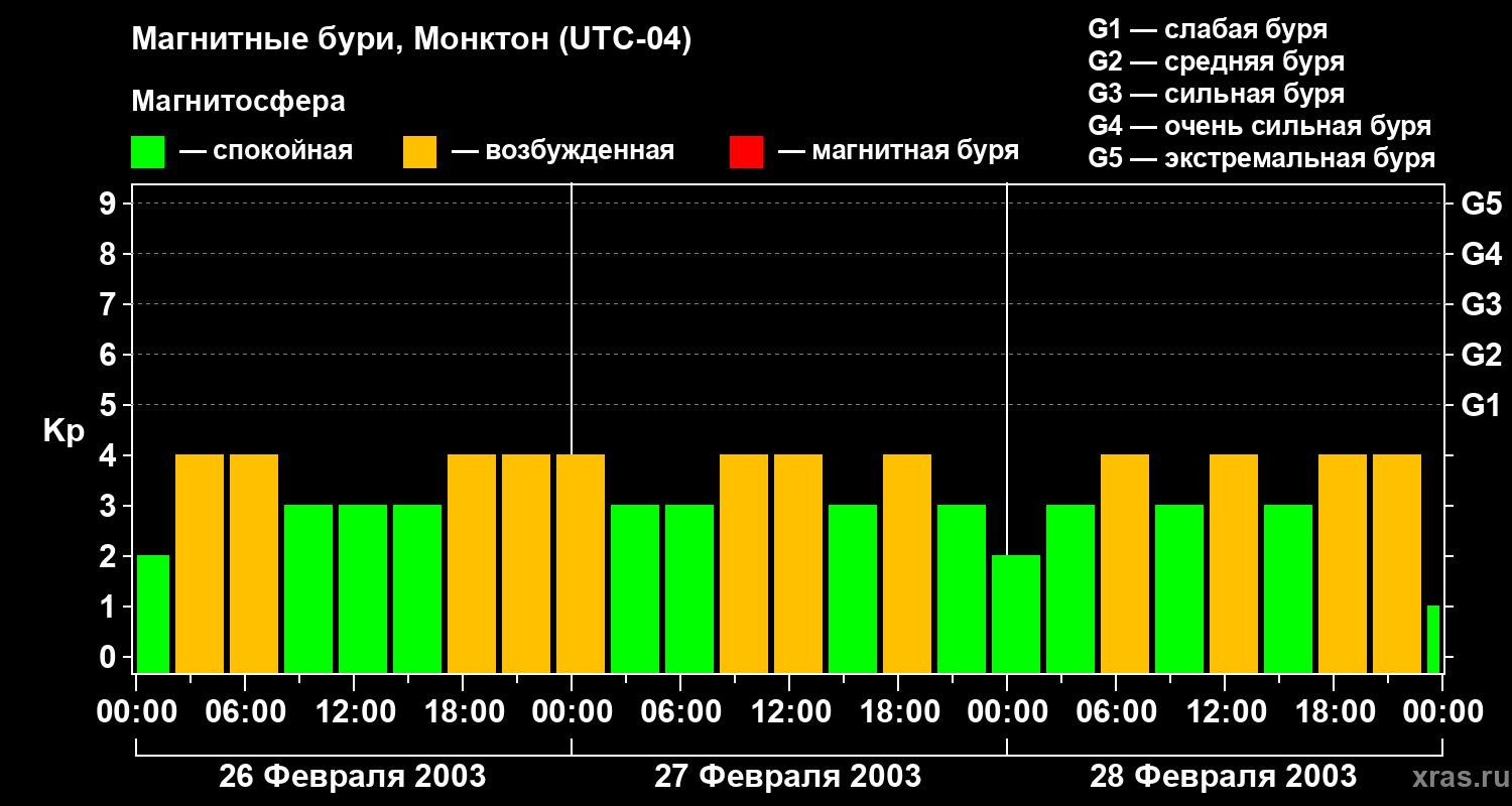 Магнитные бури в Монктоне — 28 февраля 2003 года