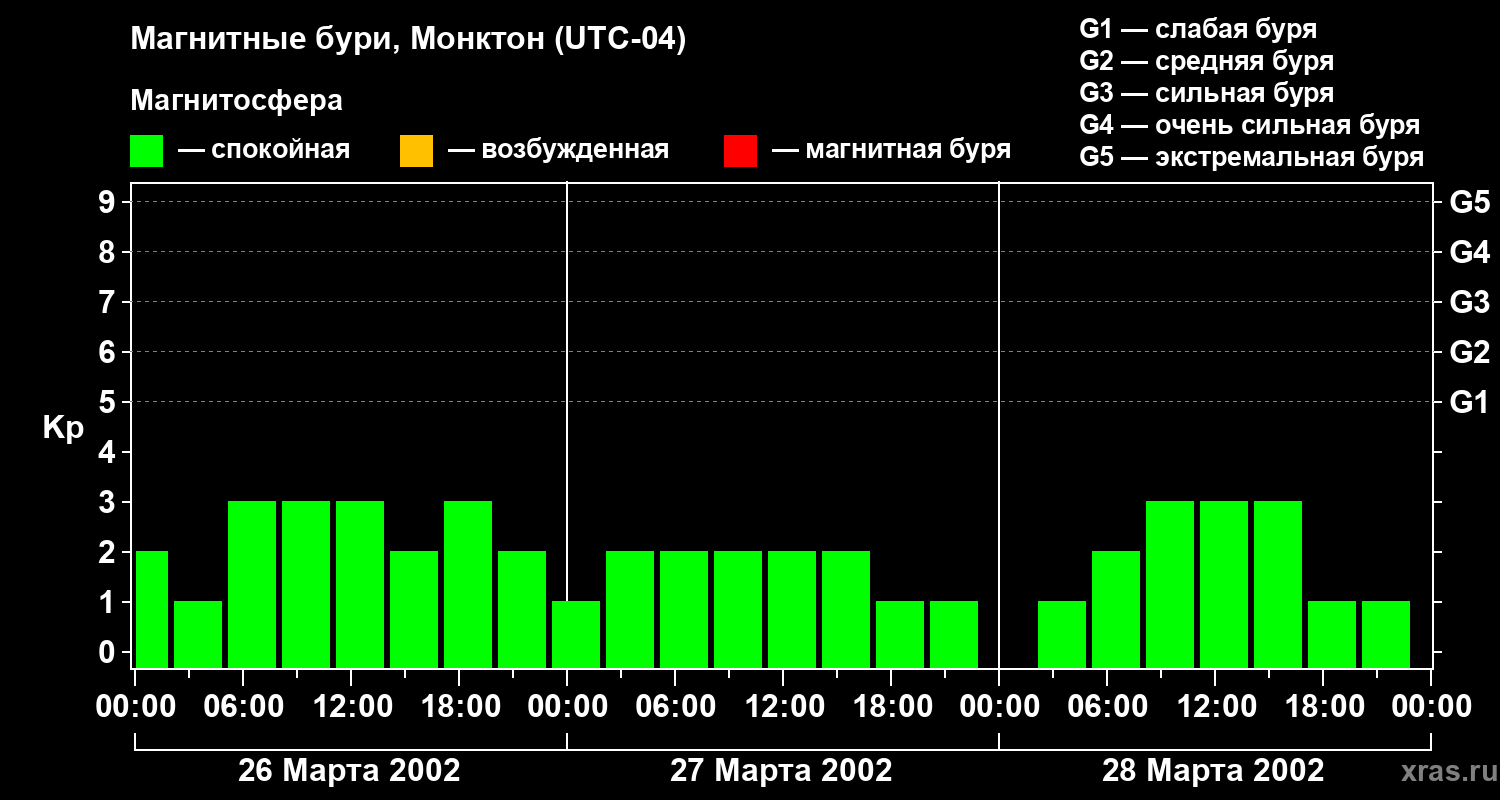 Магнитные бури в Монктоне — 28 марта 2002 года