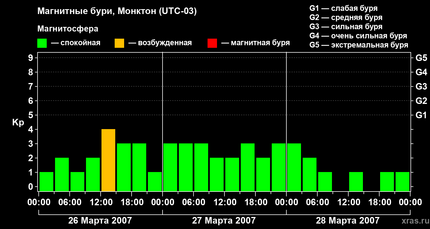 Магнитные бури в Монктоне — 28 марта 2007 года