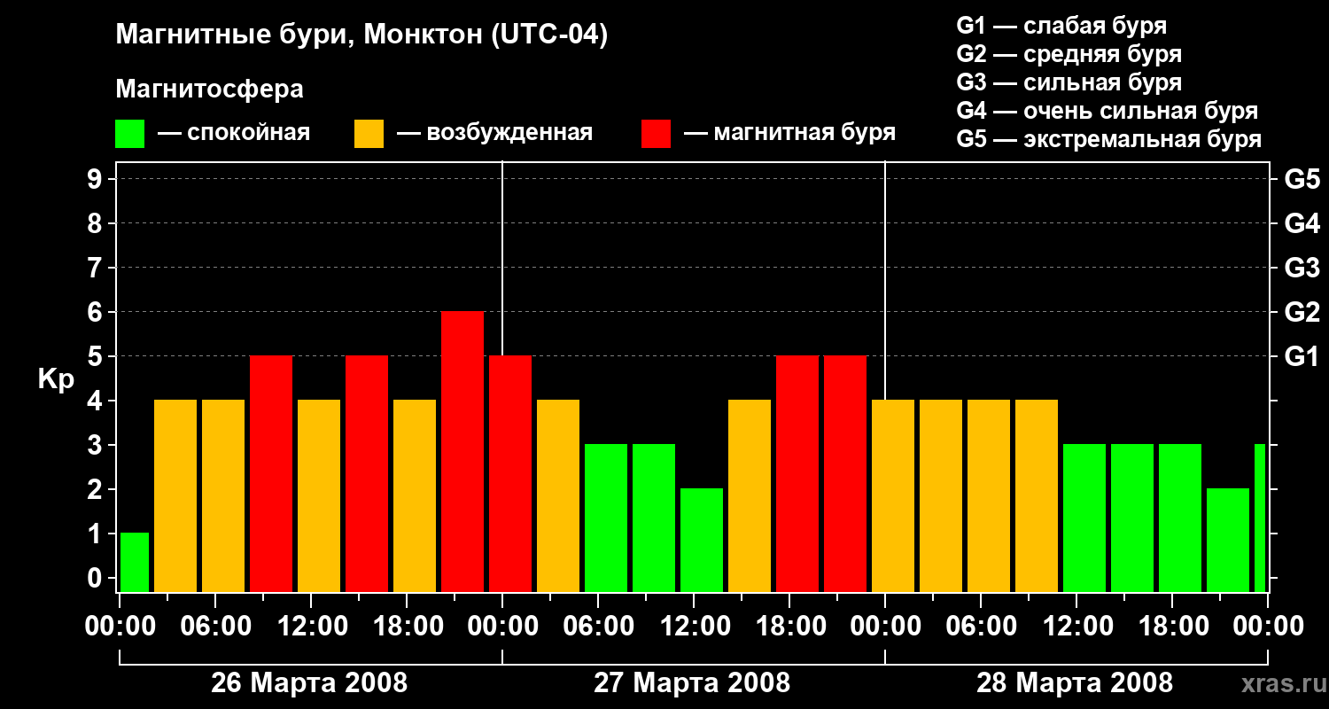 Магнитные бури в Монктоне — 28 марта 2008 года