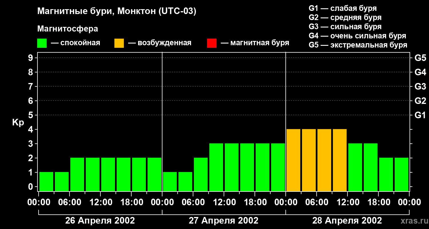 Магнитные бури в Монктоне — 28 апреля 2002 года