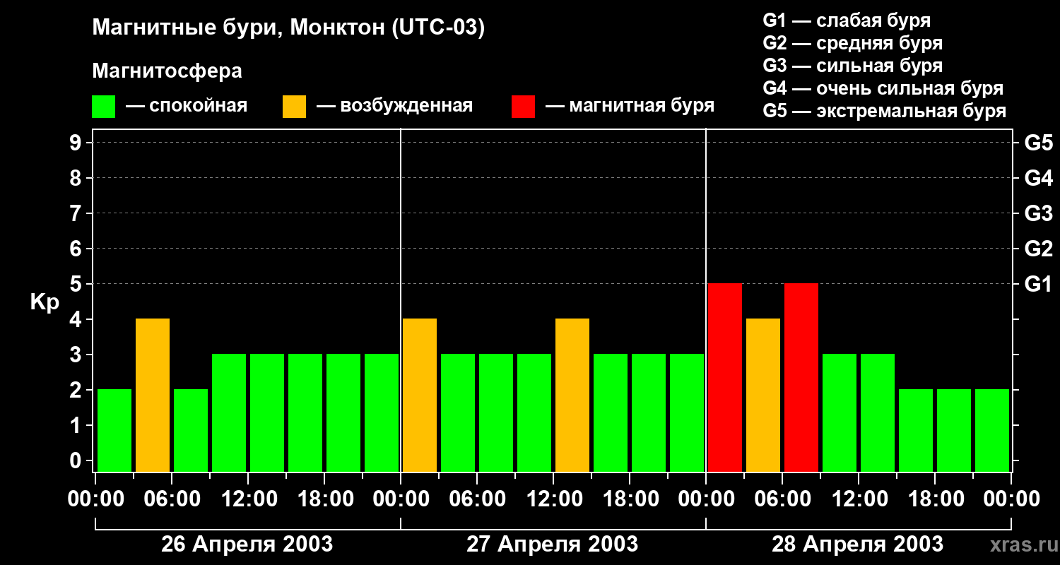 Магнитные бури в Монктоне — 28 апреля 2003 года