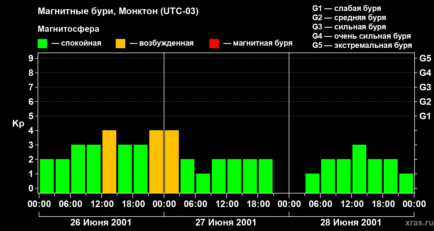 Магнитные бури в Монктоне — 28 июня 2001 года