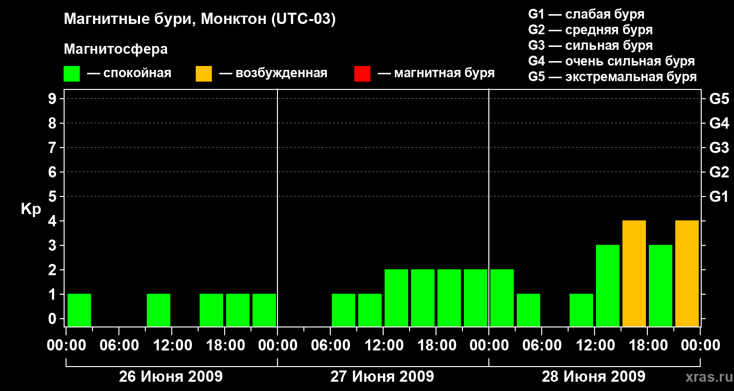 Магнитные бури в Монктоне — 28 июня 2009 года