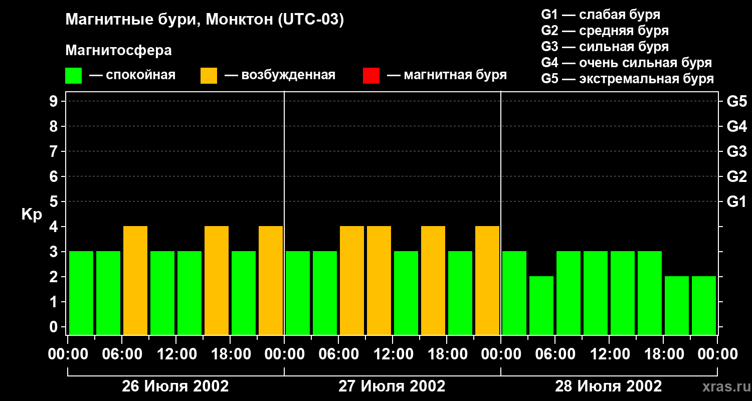 Магнитные бури в Монктоне — 28 июля 2002 года