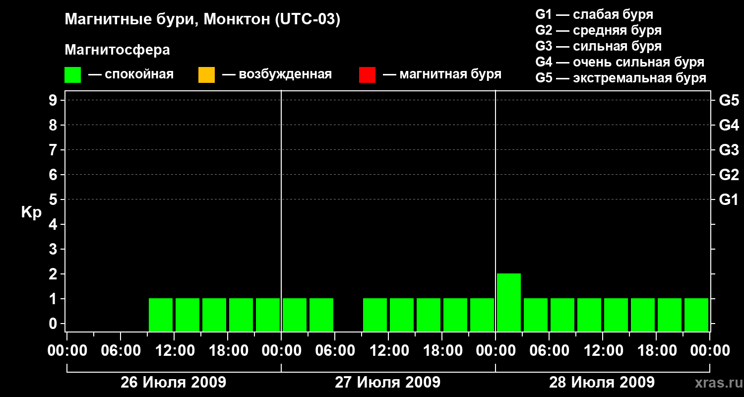 Магнитные бури в Монктоне — 28 июля 2009 года