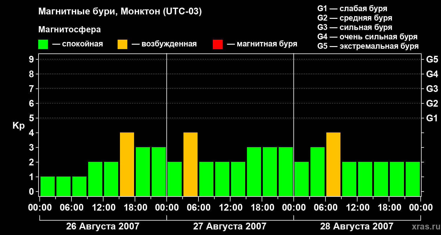 Магнитные бури в Монктоне — 28 августа 2007 года