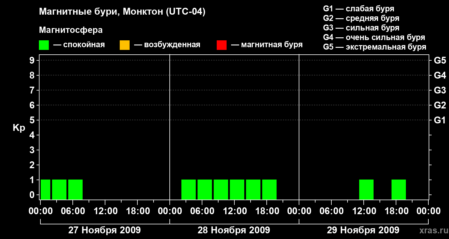 Магнитные бури в Монктоне — 29 ноября 2009 года