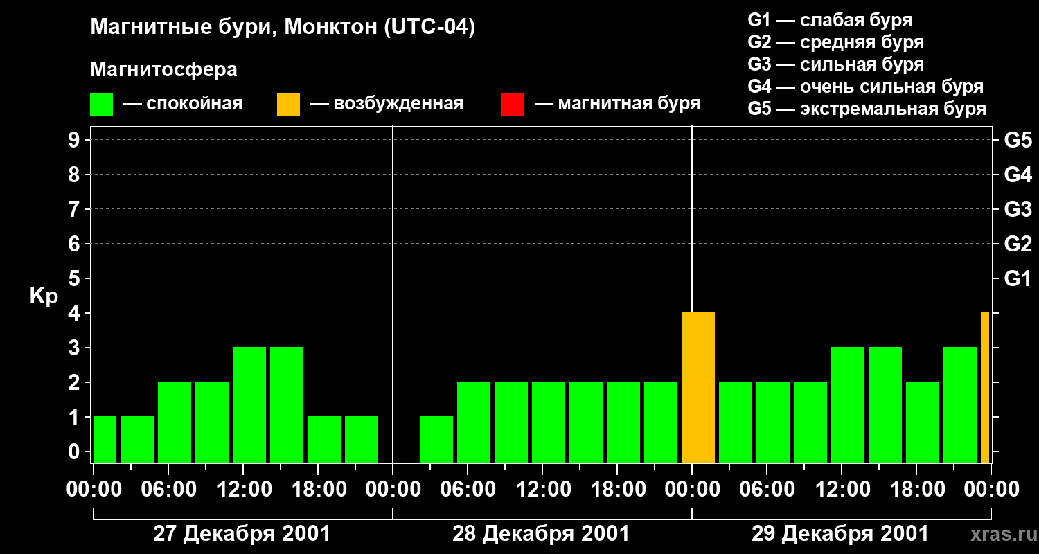 Магнитные бури в Монктоне — 29 декабря 2001 года
