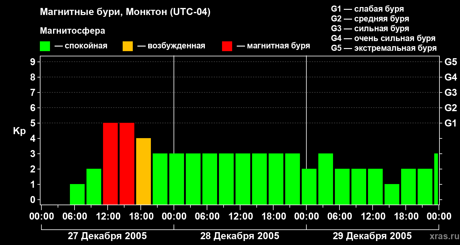 Магнитные бури в Монктоне — 29 декабря 2005 года