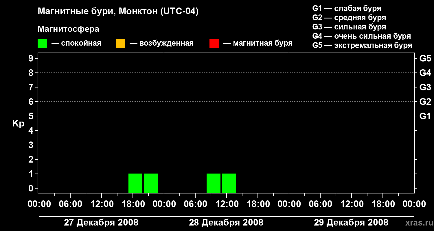 Магнитные бури в Монктоне — 29 декабря 2008 года
