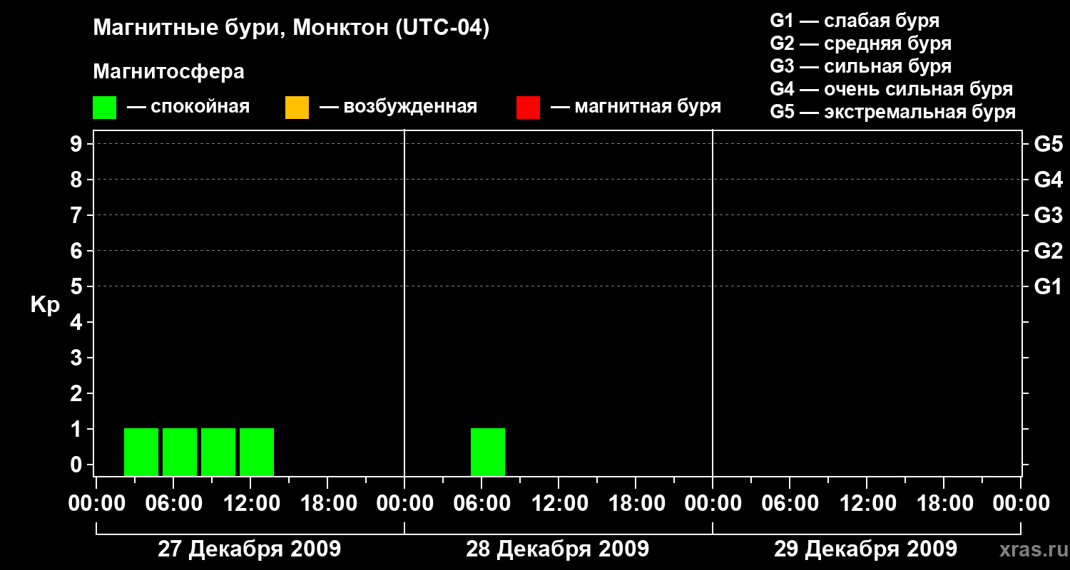 Магнитные бури в Монктоне — 29 декабря 2009 года