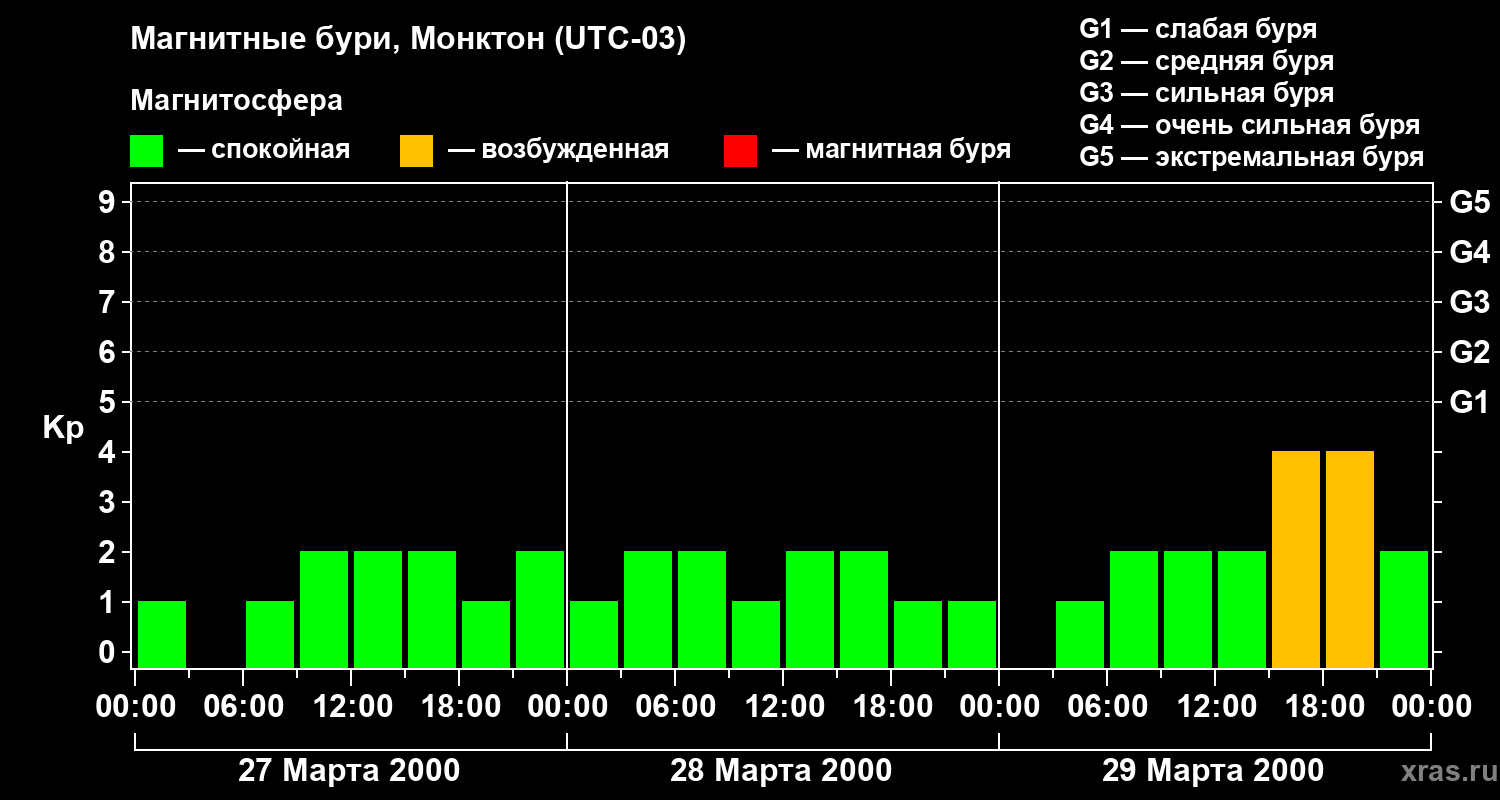 Магнитные бури в Монктоне — 29 марта 2000 года