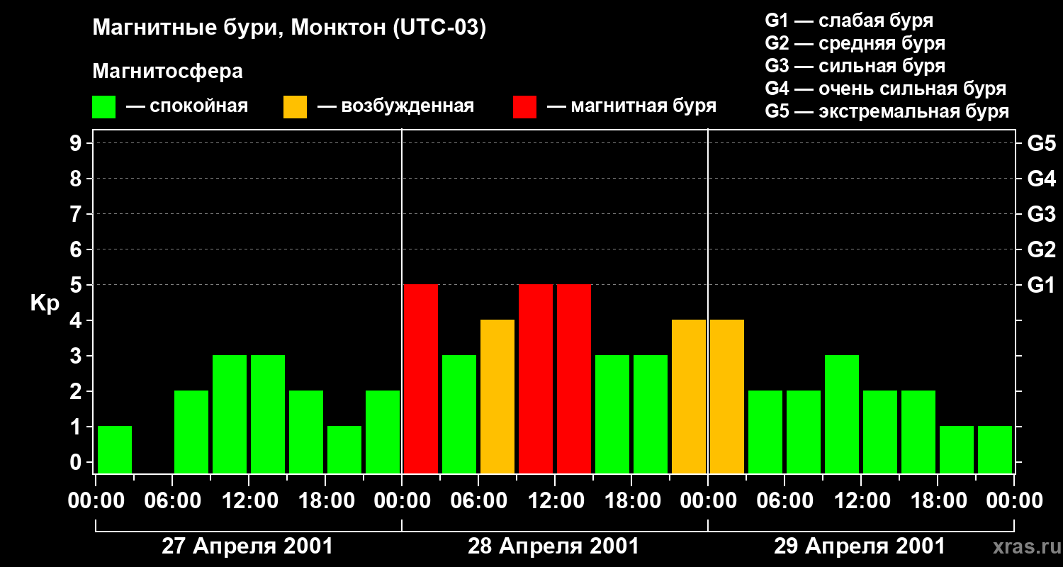 Магнитные бури в Монктоне — 29 апреля 2001 года