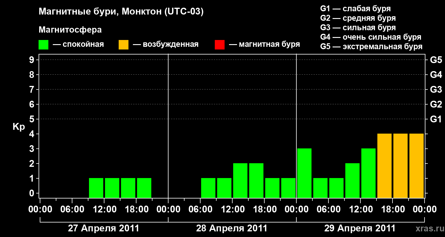 Магнитные бури в Монктоне — 29 апреля 2011 года