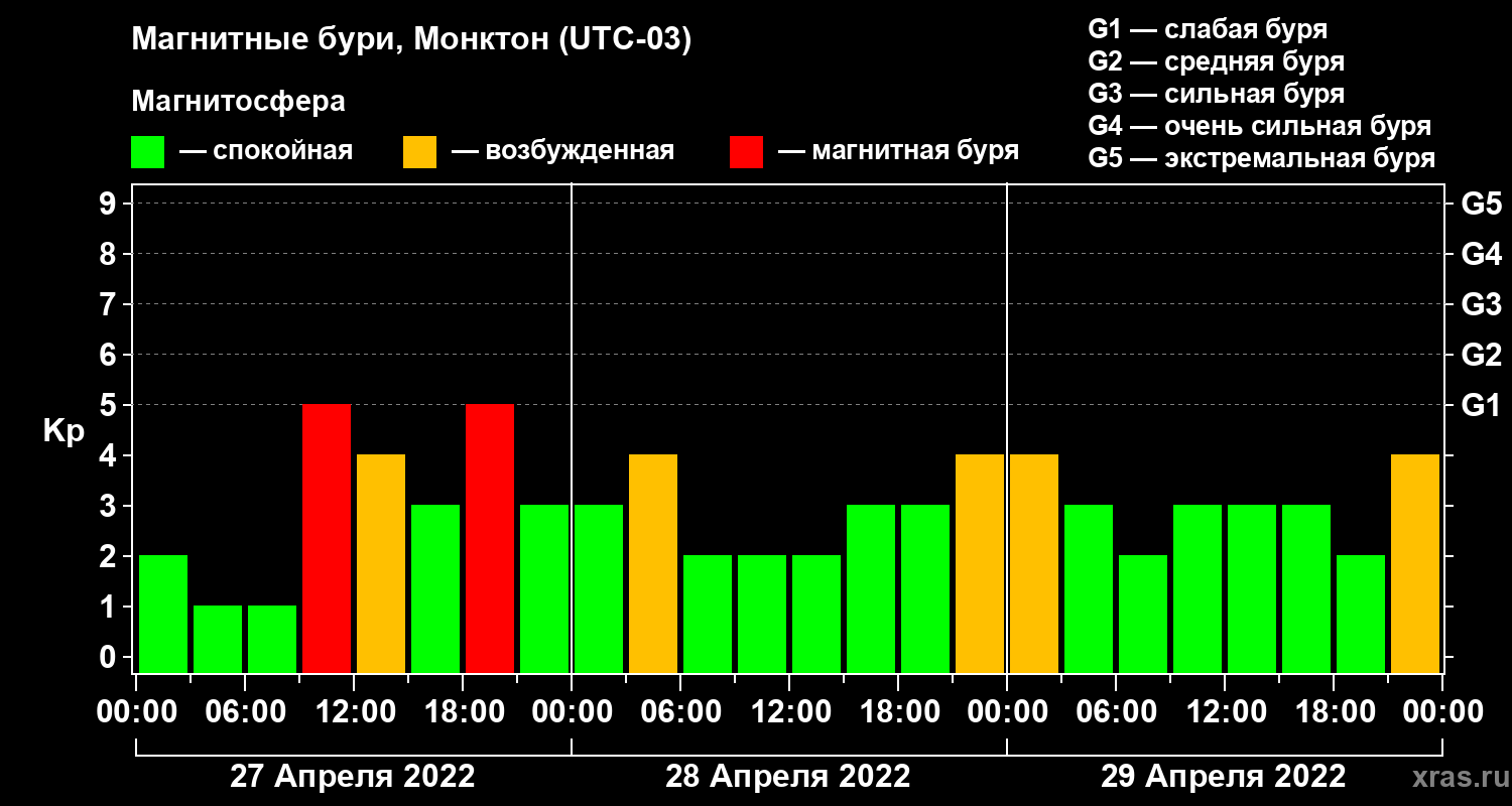 Магнитные бури в Монктоне в апреле 2022 года