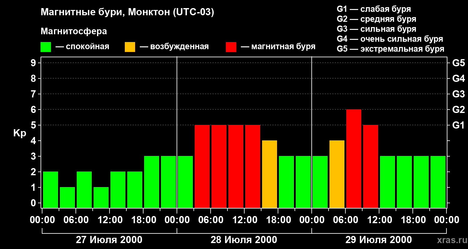 Магнитные бури в Монктоне — 29 июля 2000 года