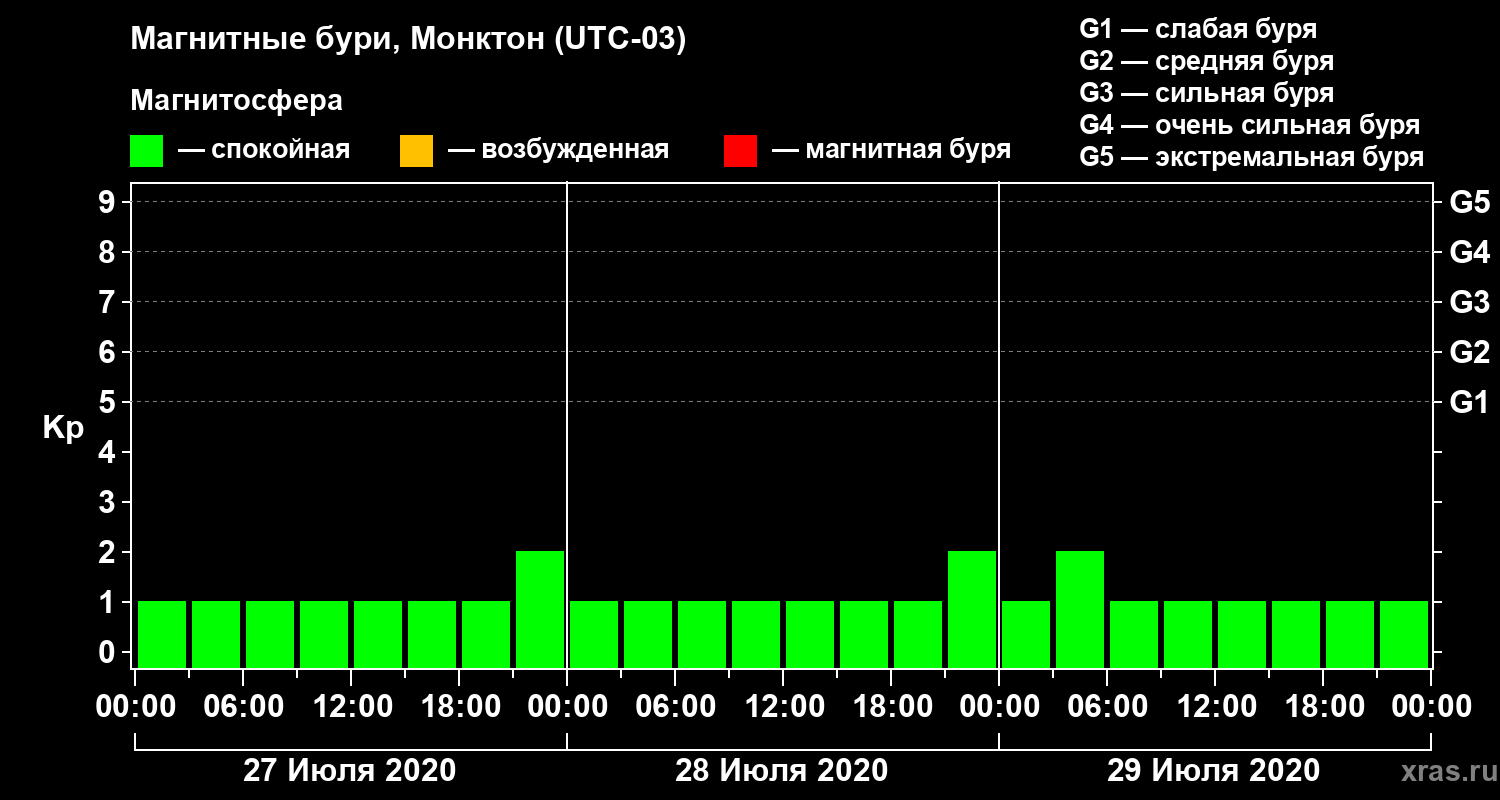 Магнитные бури в Монктоне — 29 июля 2020 года