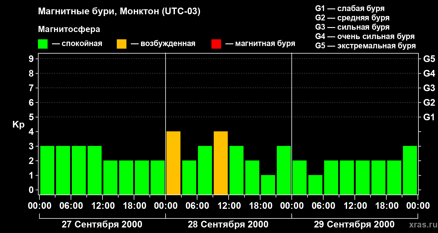 Магнитные бури в Монктоне 29 сентября 2000 года