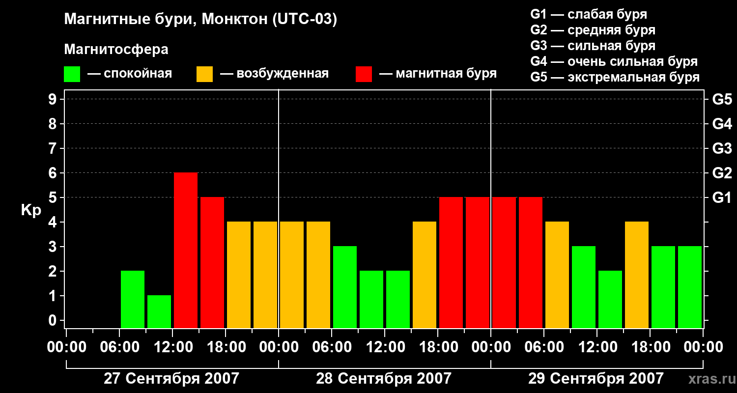 Магнитные бури в Монктоне — 29 сентября 2007 года
