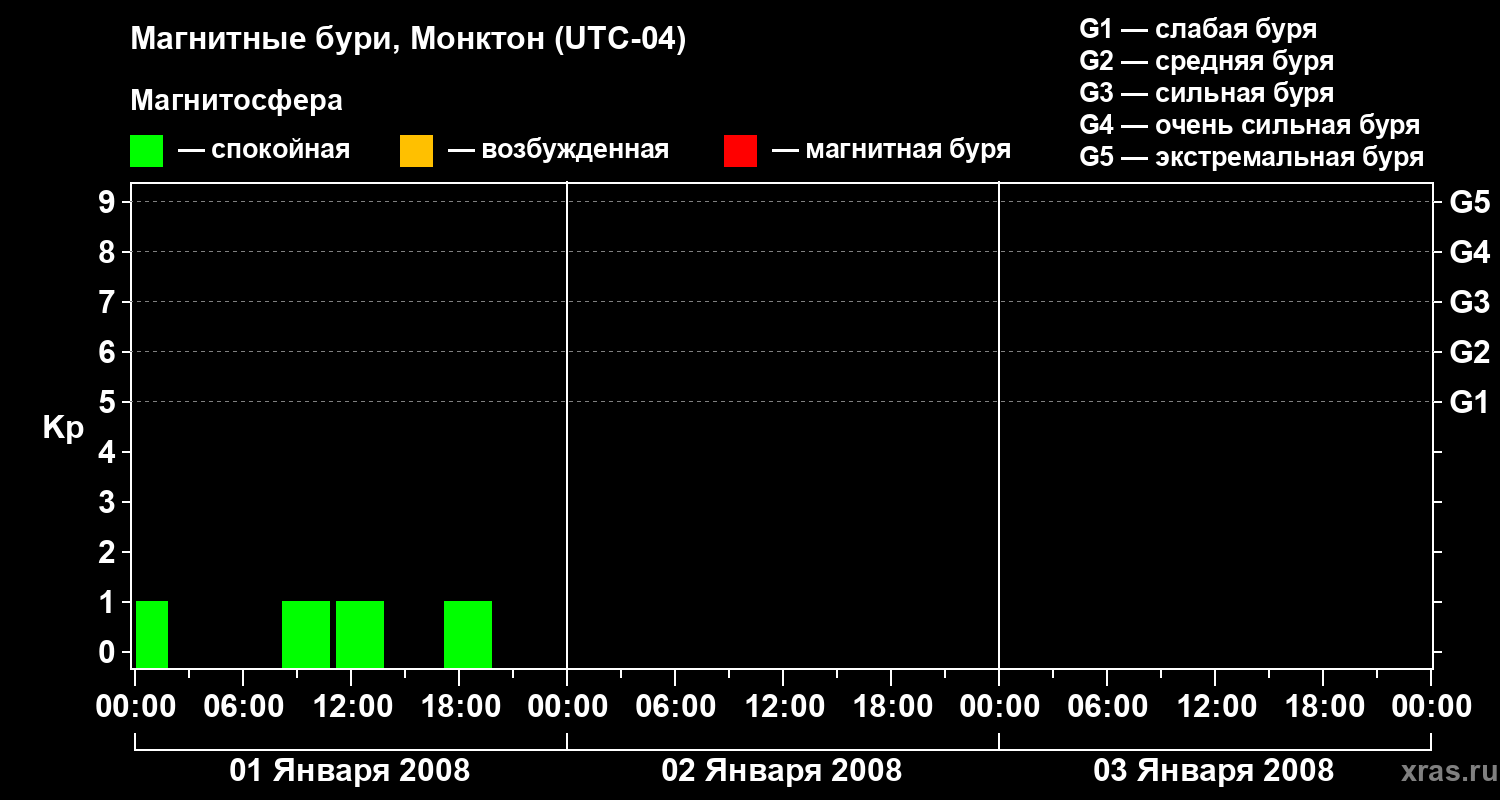 Изменения геомагнитного индекса Kp с 1 по 3 января 2008 года для средних широт