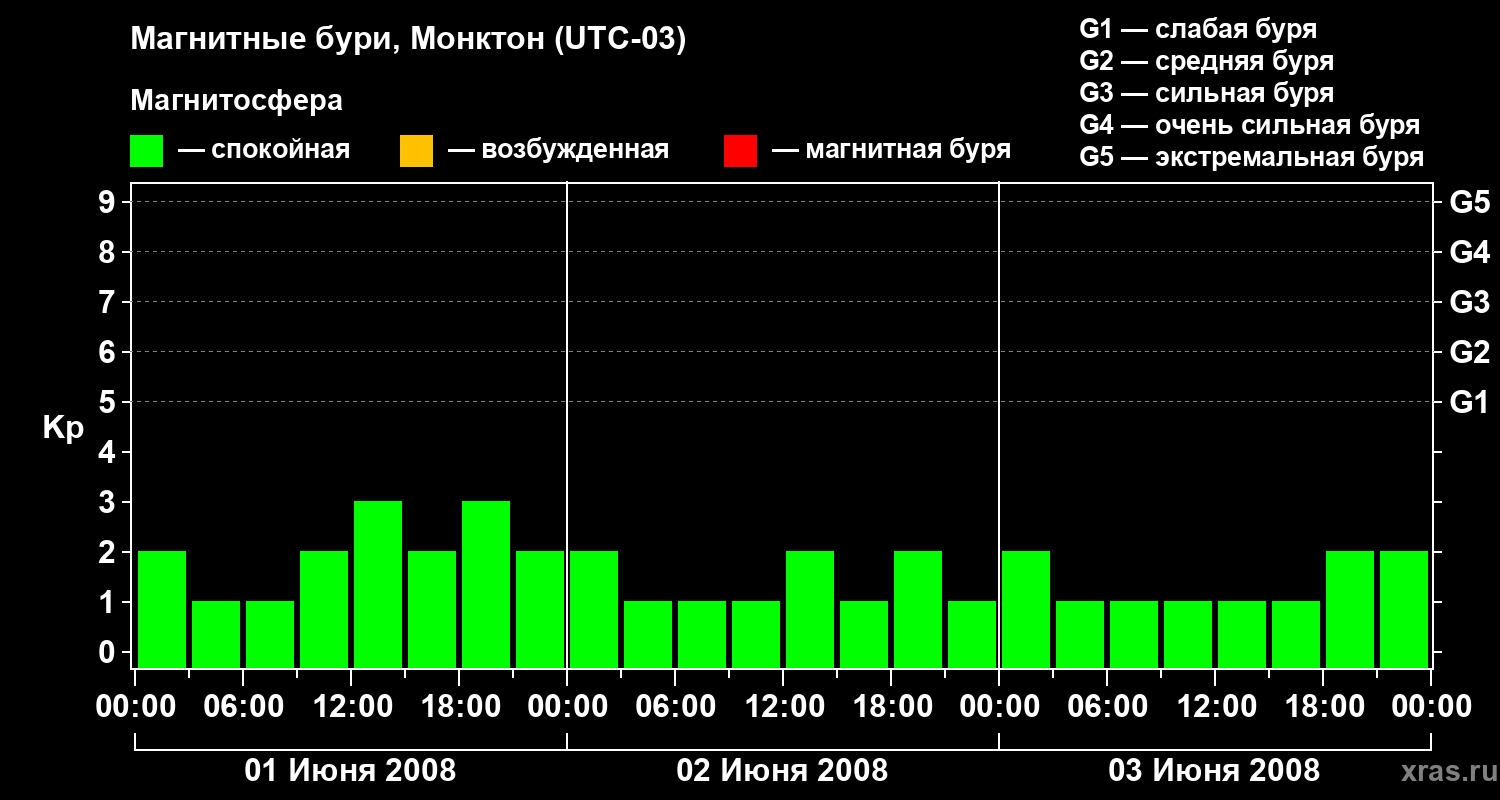 Магнитные бури в Монктоне — 3 июня 2008 года