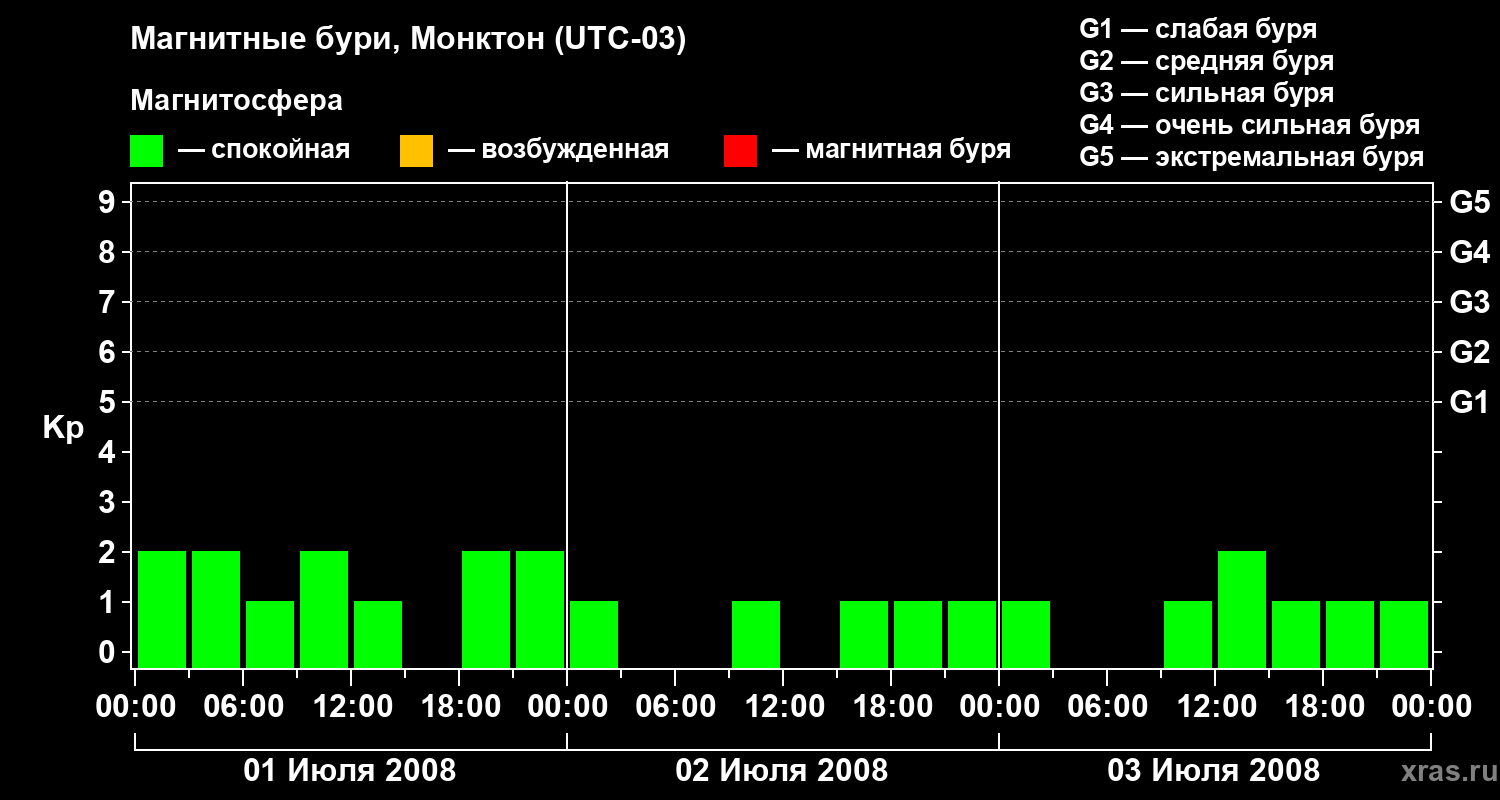 Магнитные бури в Монктоне 3 июля 2008 года