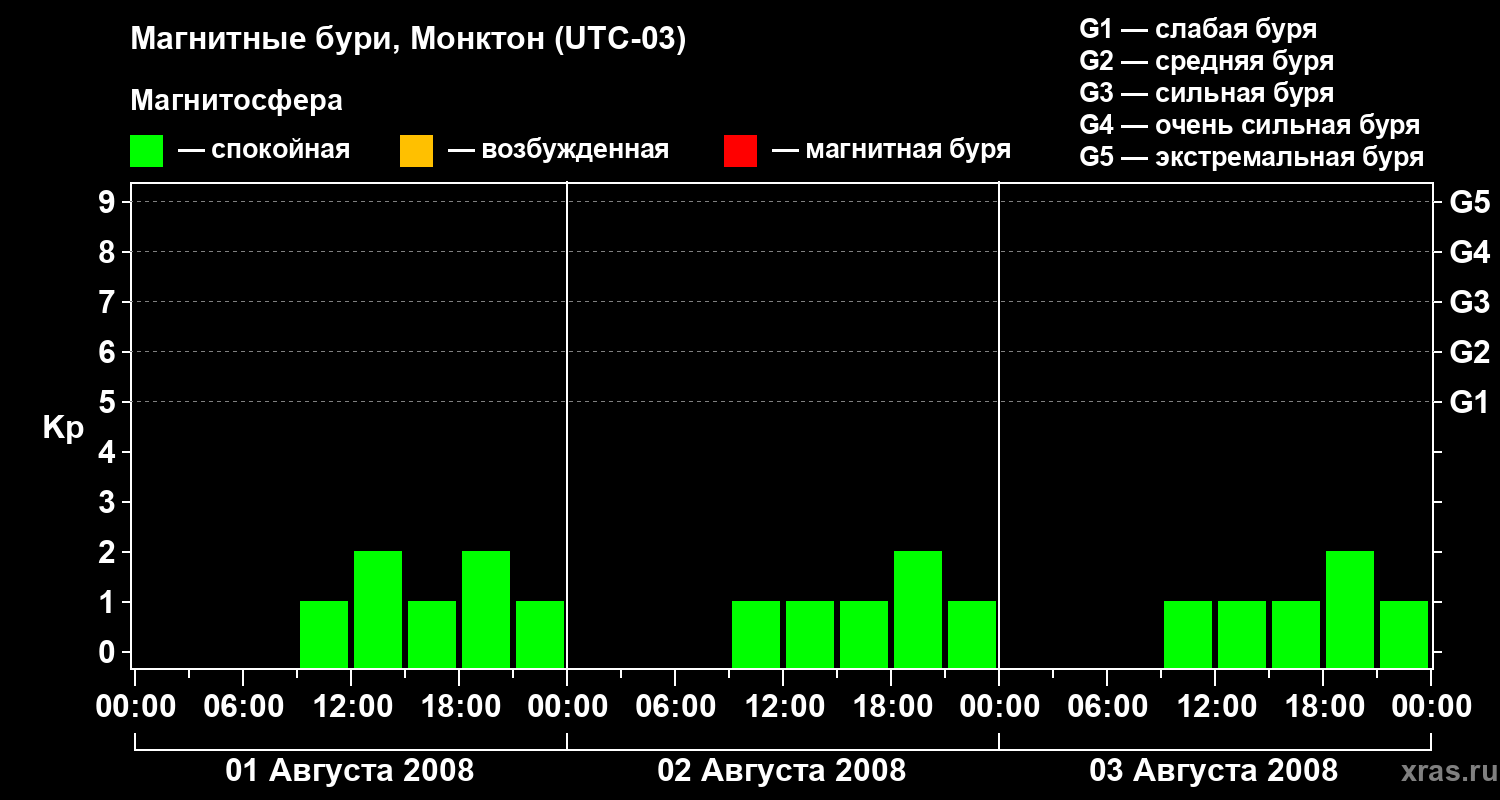Магнитные бури в Монктоне 3 августа 2008 года