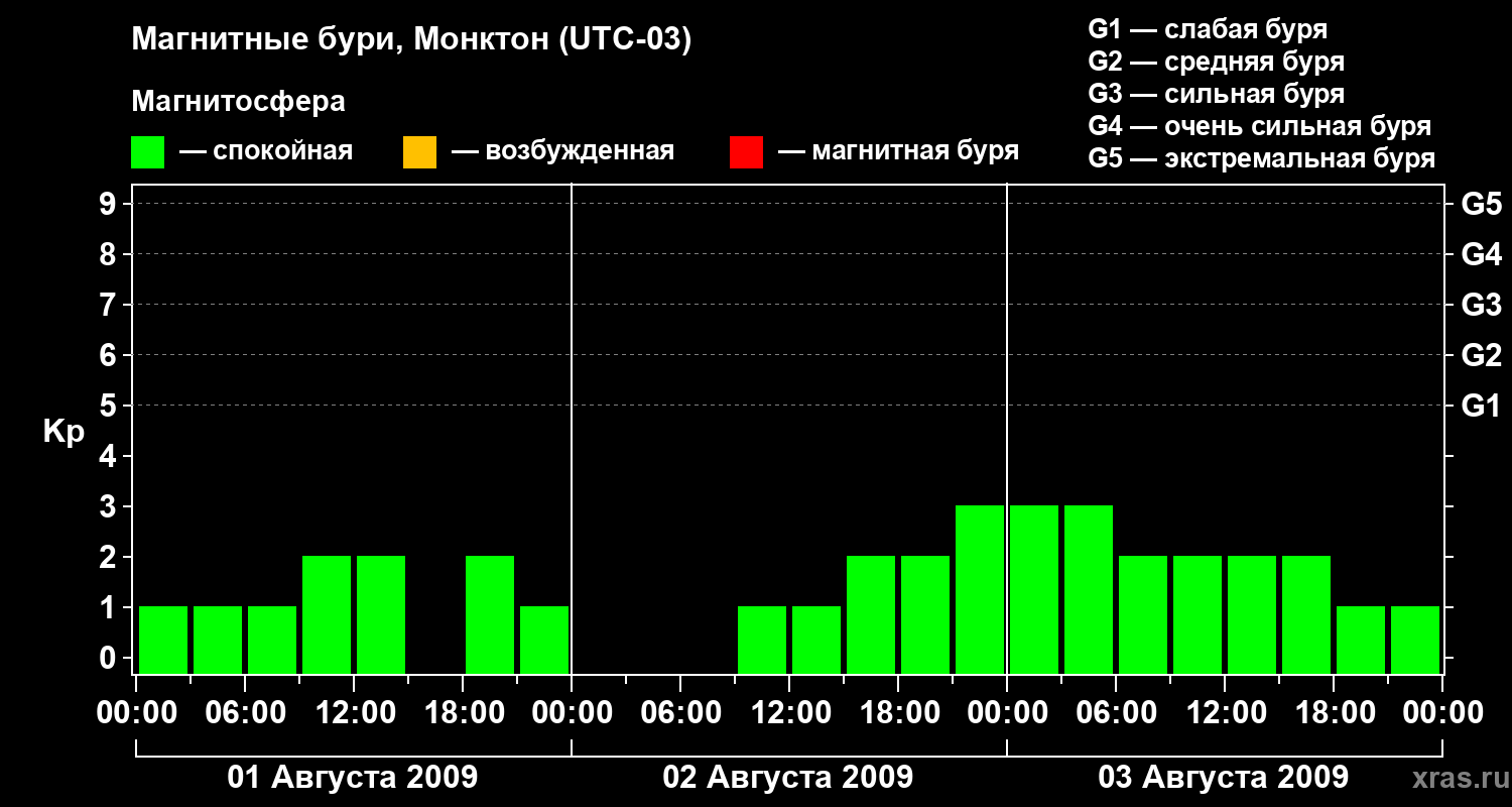 Магнитные бури в Монктоне — 3 августа 2009 года