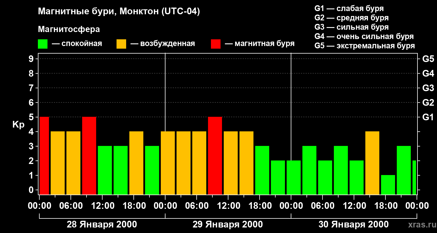Магнитные бури в Монктоне — 30 января 2000 года