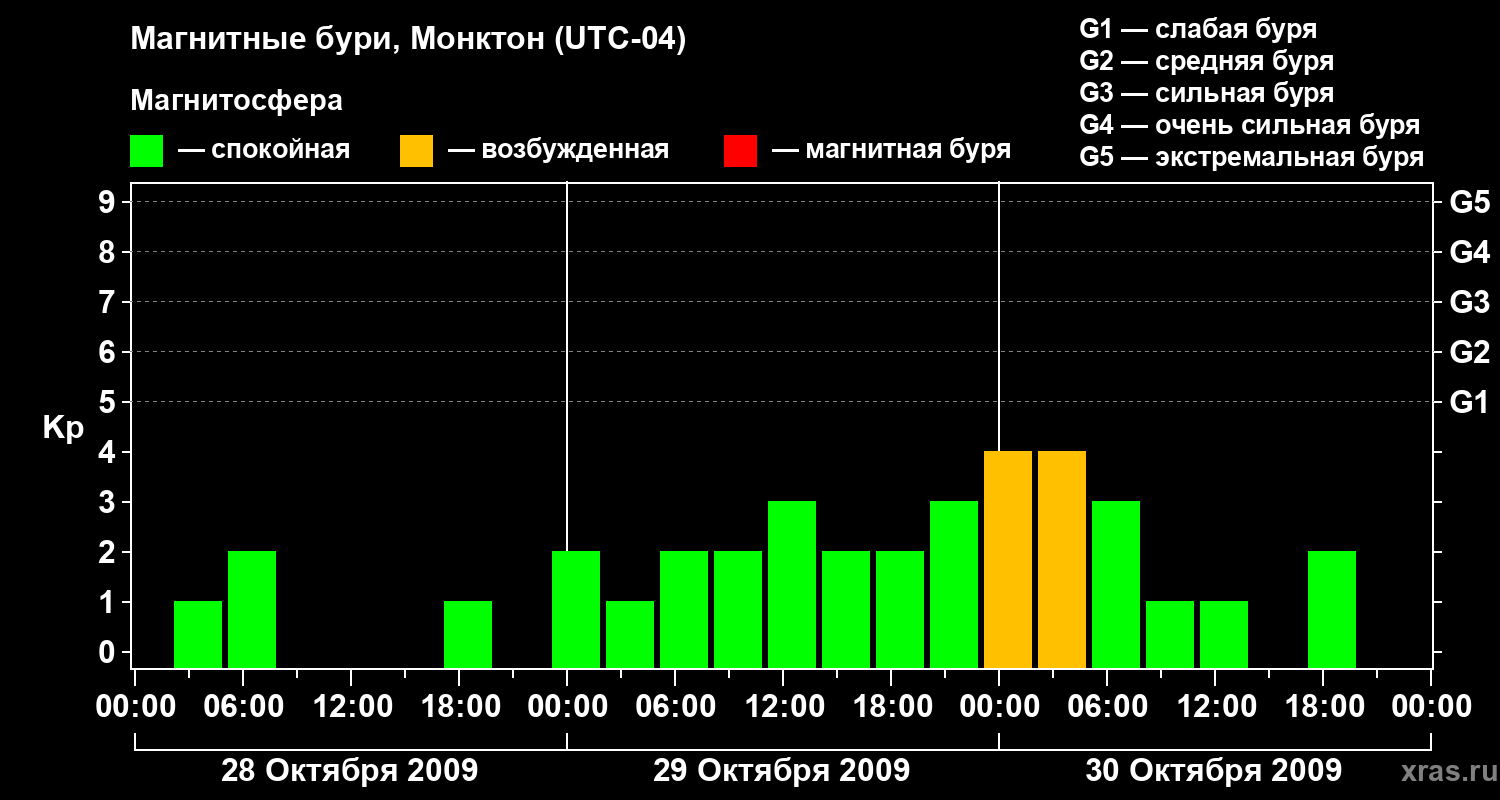 Магнитные бури в Монктоне — 30 октября 2009 года