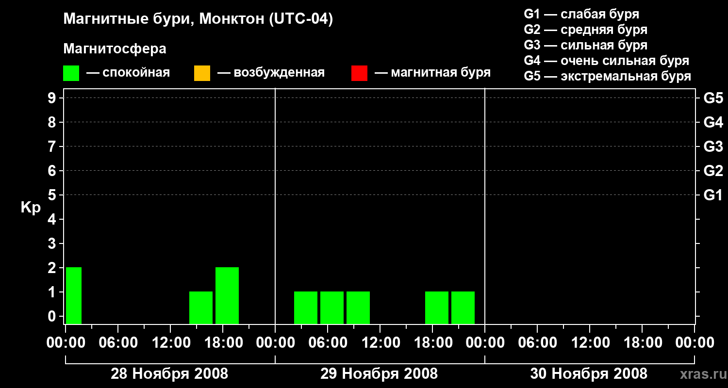 Магнитные бури в Монктоне — 30 ноября 2008 года