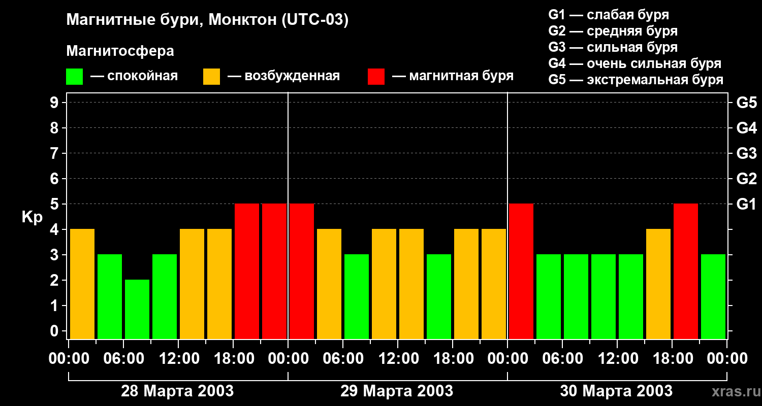 Магнитные бури в Монктоне — 30 марта 2003 года