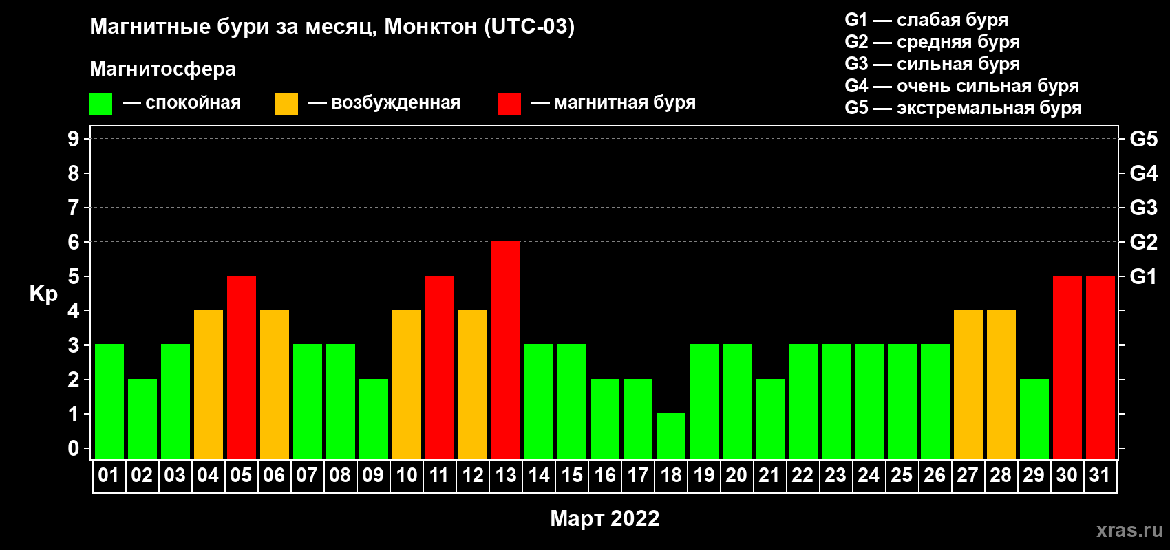 Магнитные бури в Монктоне — 30 марта 2022 года