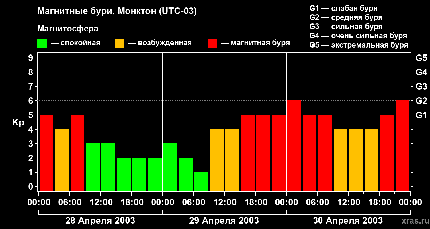 Магнитные бури в Монктоне — 30 апреля 2003 года