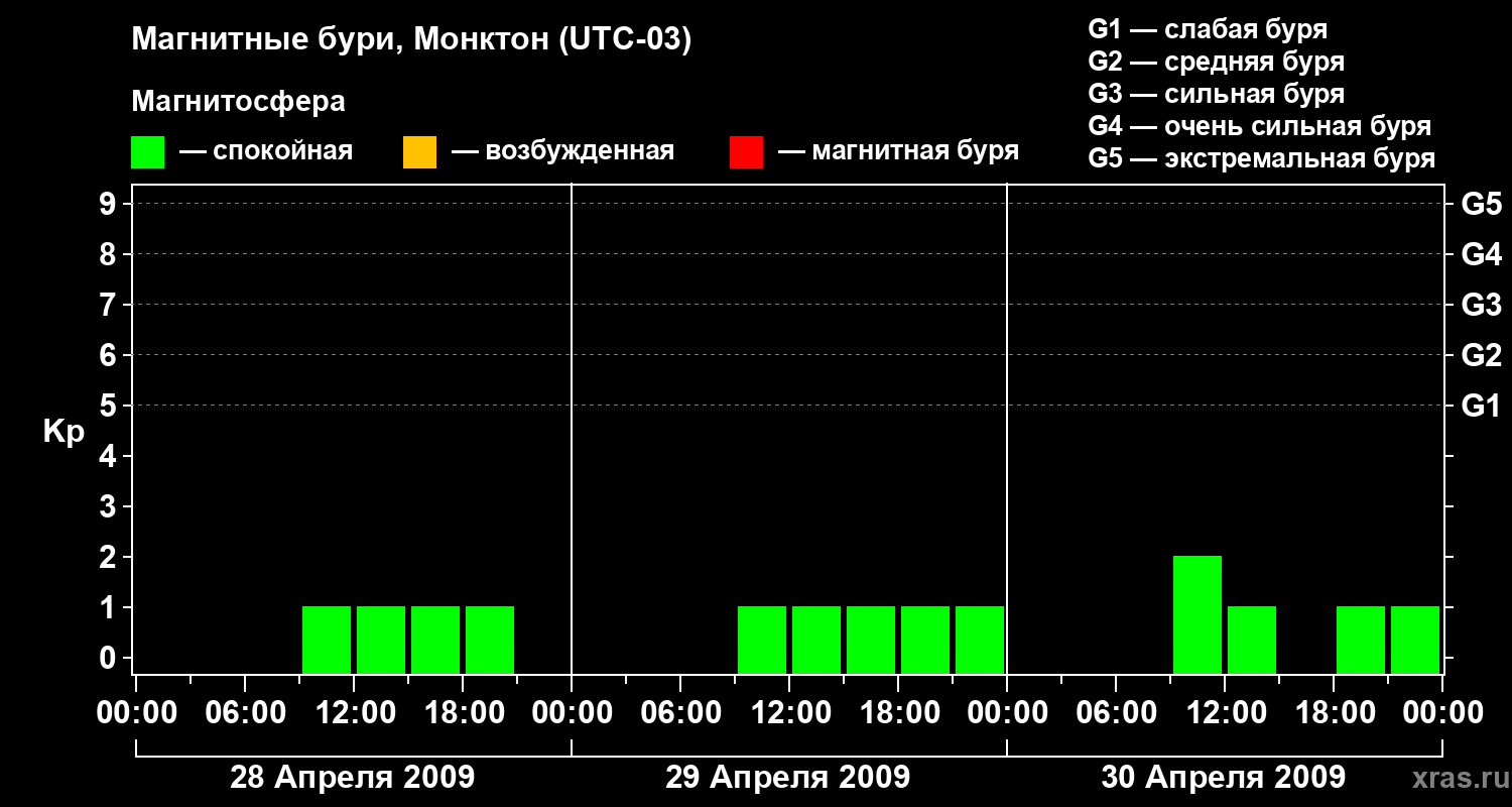 Магнитные бури в Монктоне — 30 апреля 2009 года