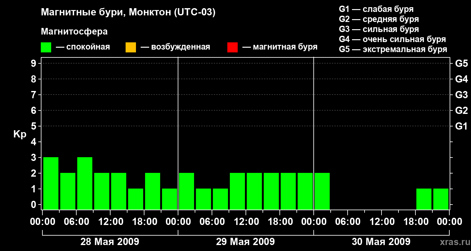 Магнитные бури в Монктоне — 30 мая 2009 года