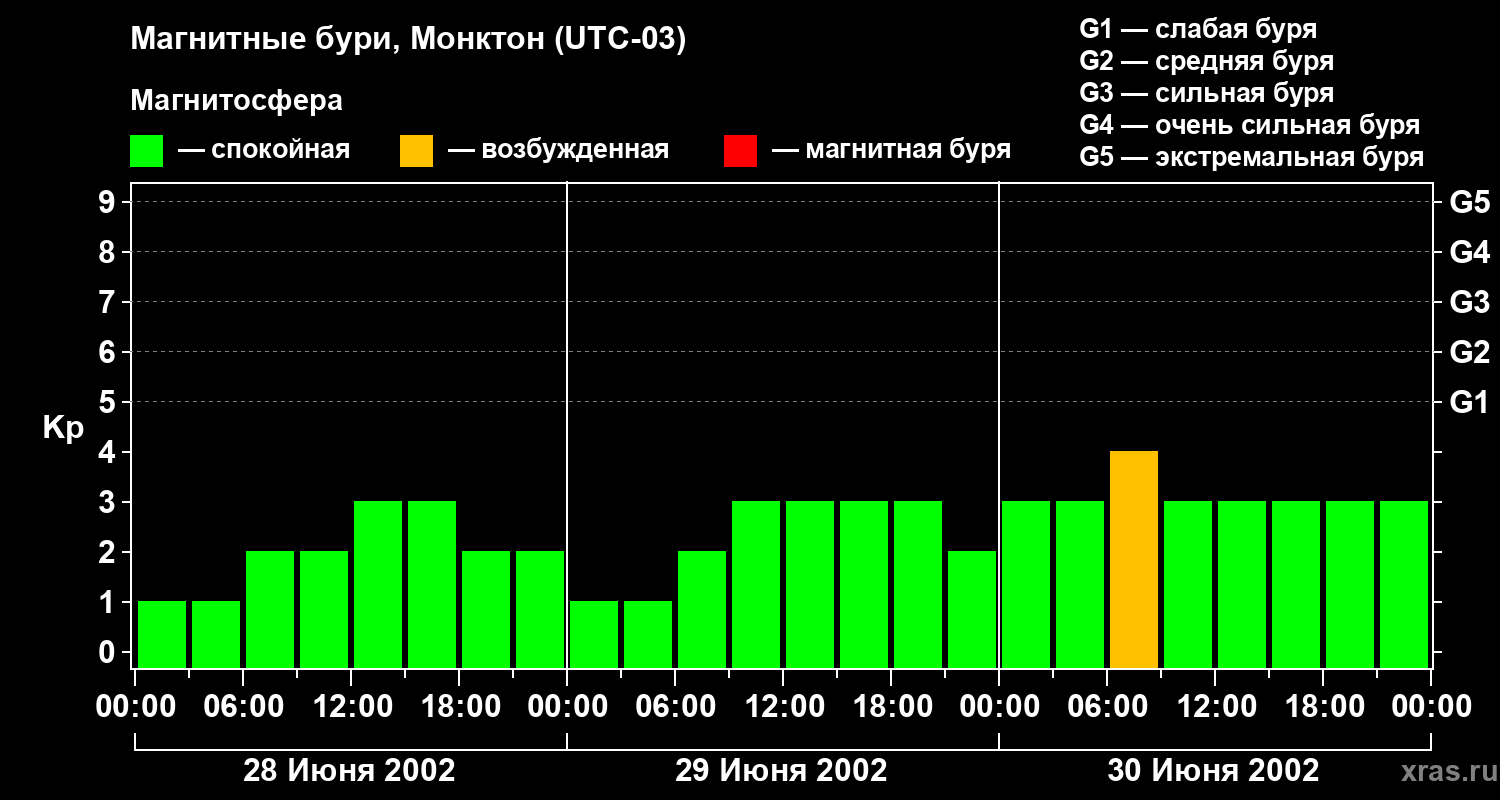 Магнитные бури в Монктоне 30 июня 2002 года