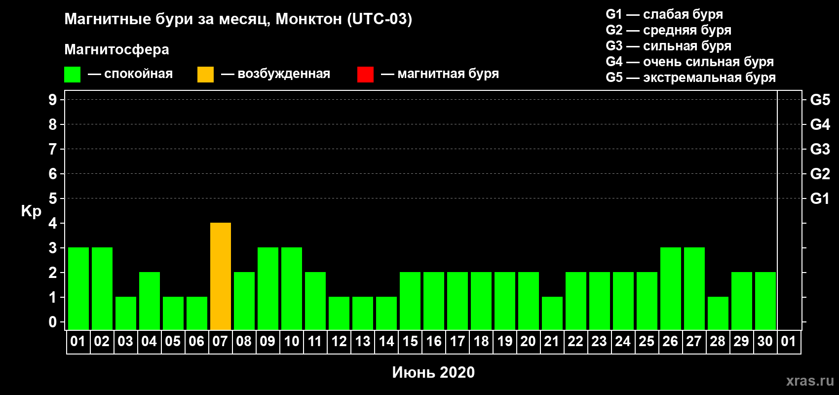 Магнитные бури в Монктоне — 30 июня 2020 года