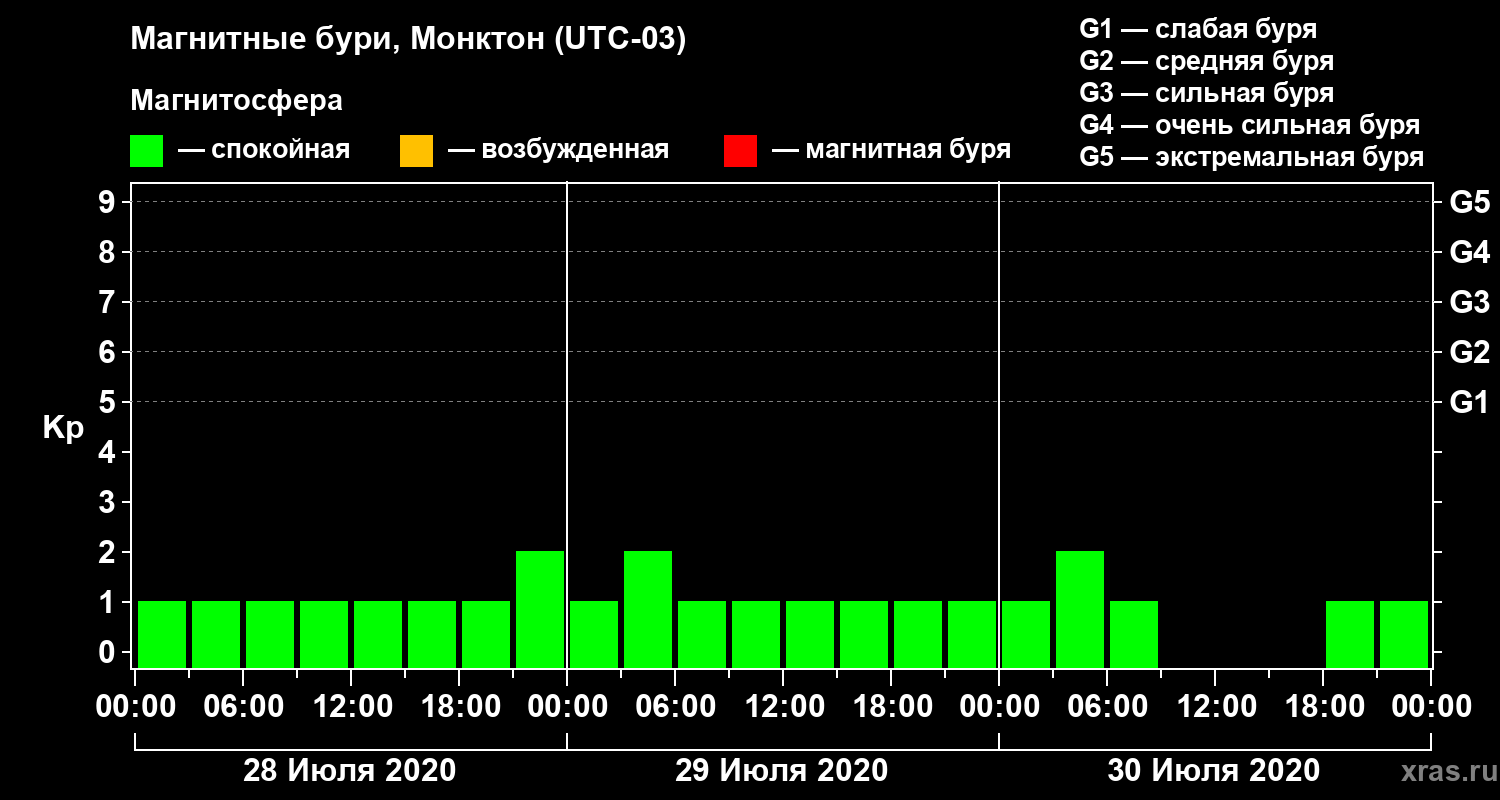 Магнитные бури в Монктоне — 30 июля 2020 года
