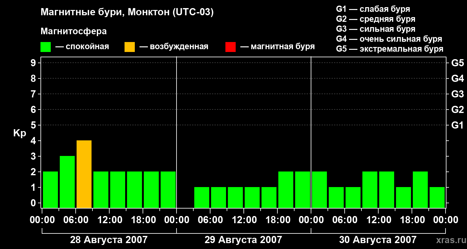 Магнитные бури в Монктоне — 30 августа 2007 года