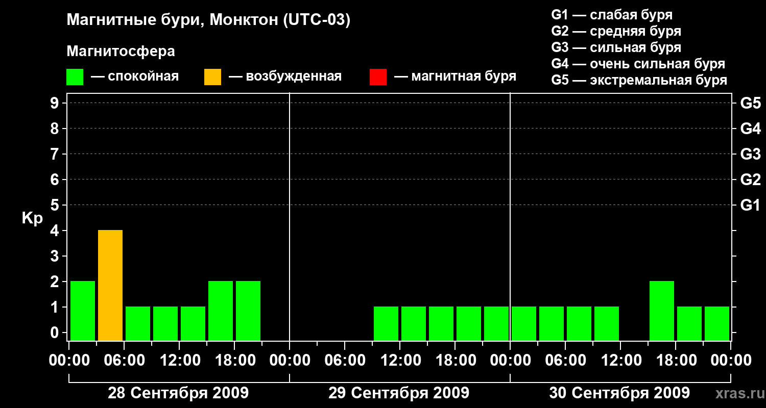 Магнитные бури в Монктоне — 30 сентября 2009 года