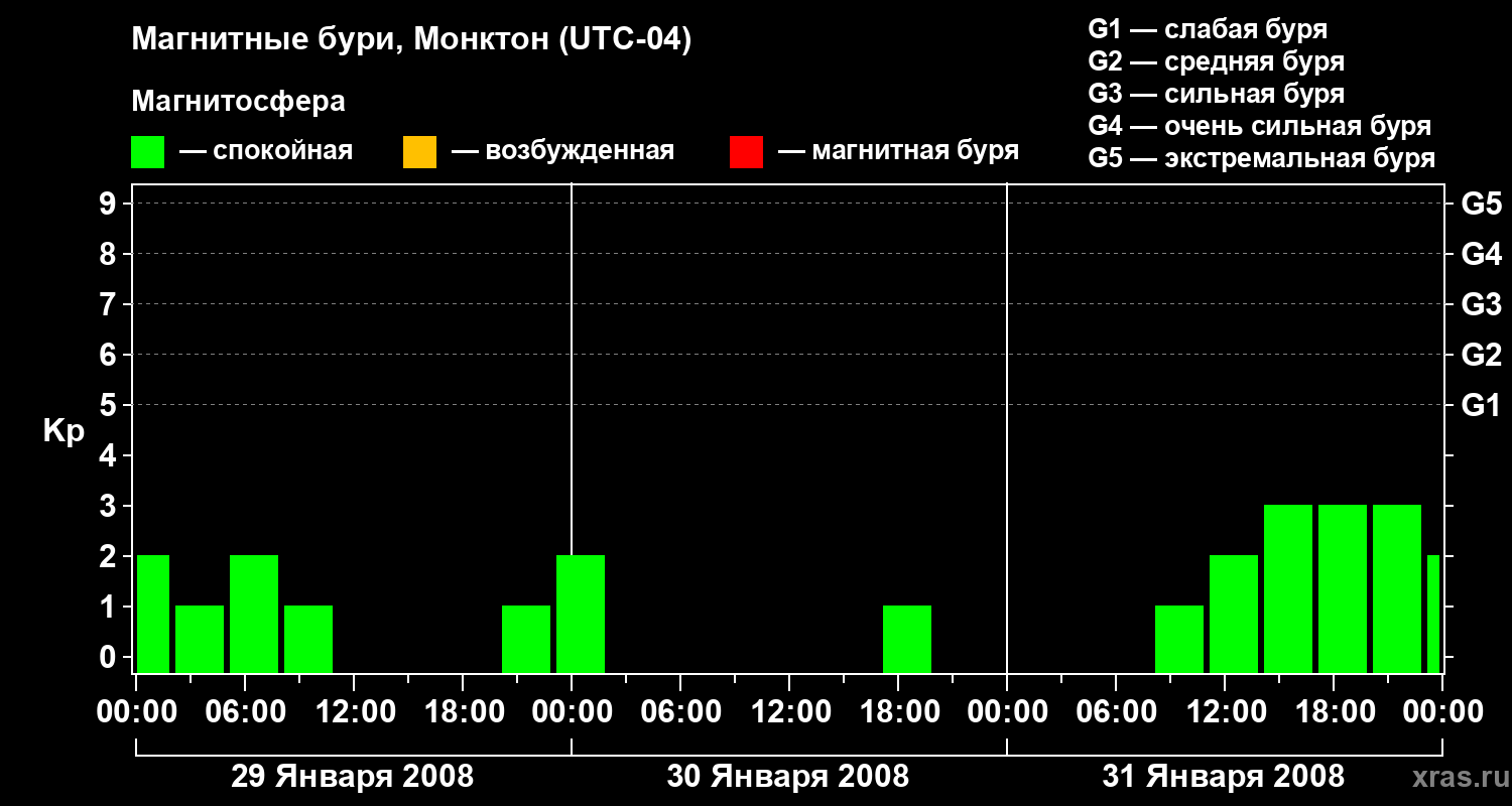 Магнитные бури в Монктоне — 31 января 2008 года