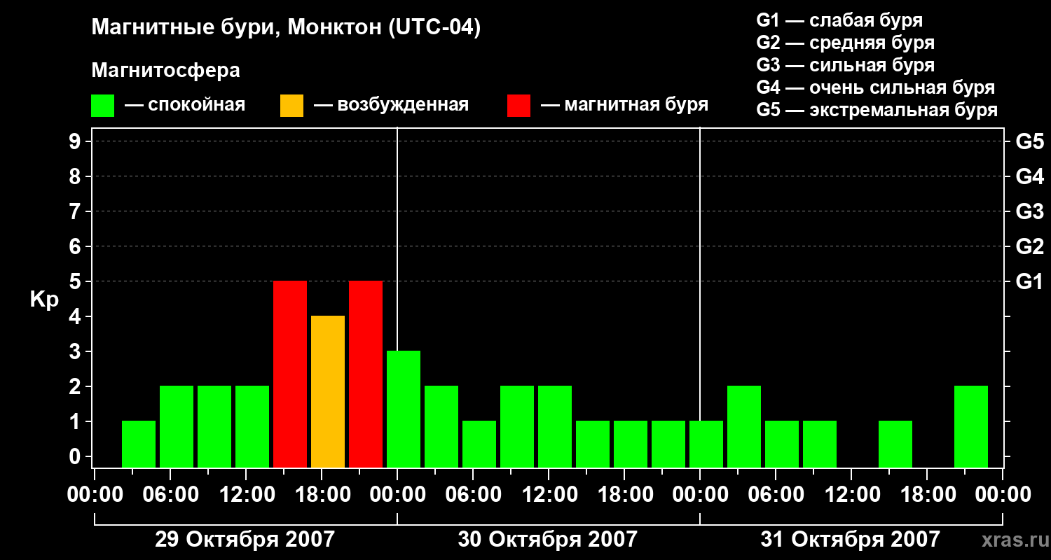Магнитные бури в Монктоне — 31 октября 2007 года