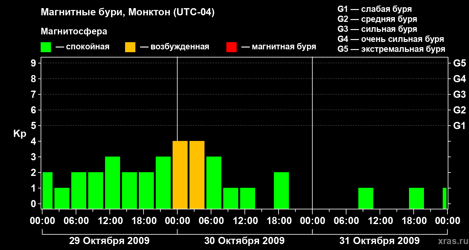Магнитные бури в Монктоне — 31 октября 2009 года